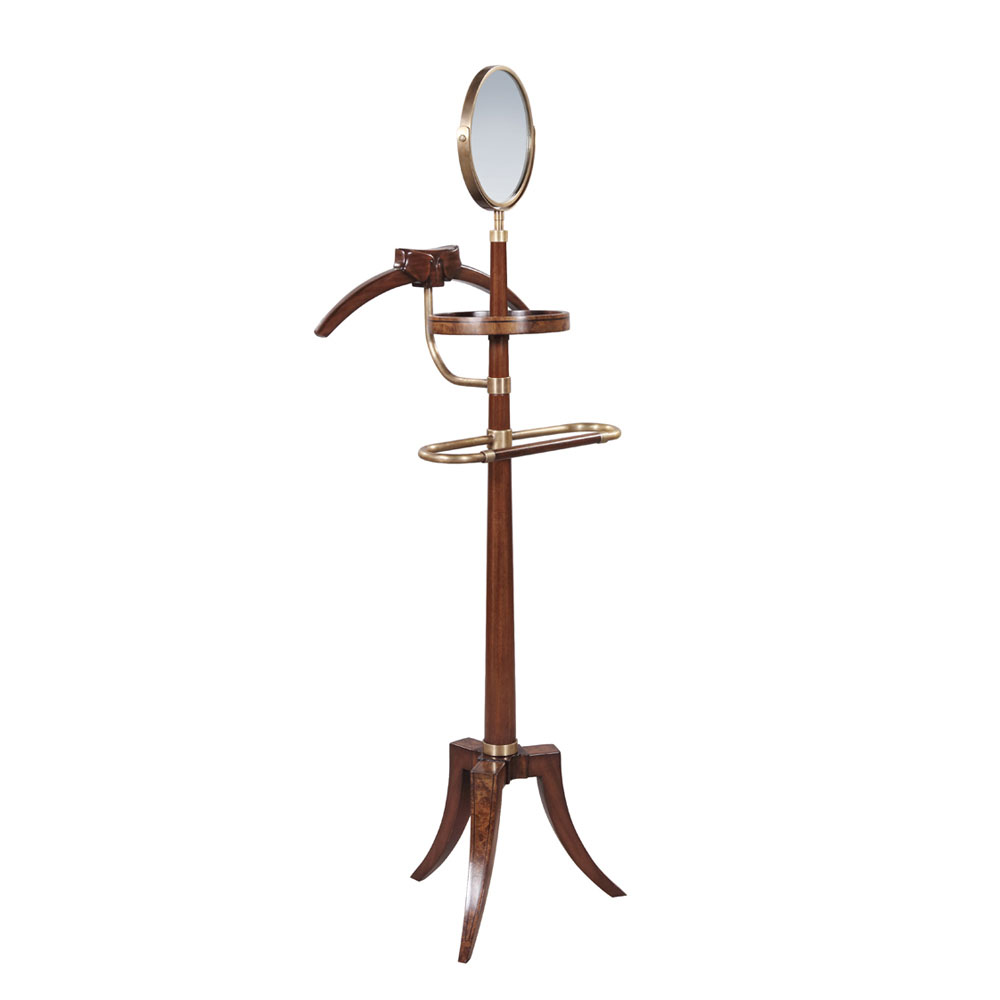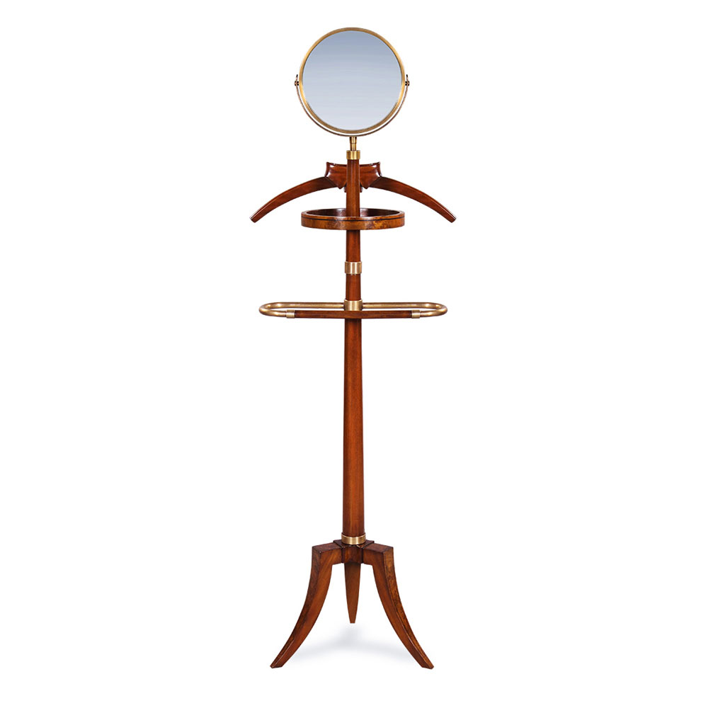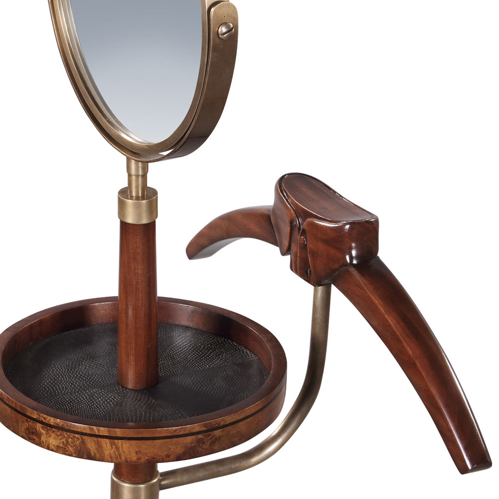 Handsome Dressboy in Mahogany and lots of brass details. The tray comes with Kommodo leather and dark strip inlay.