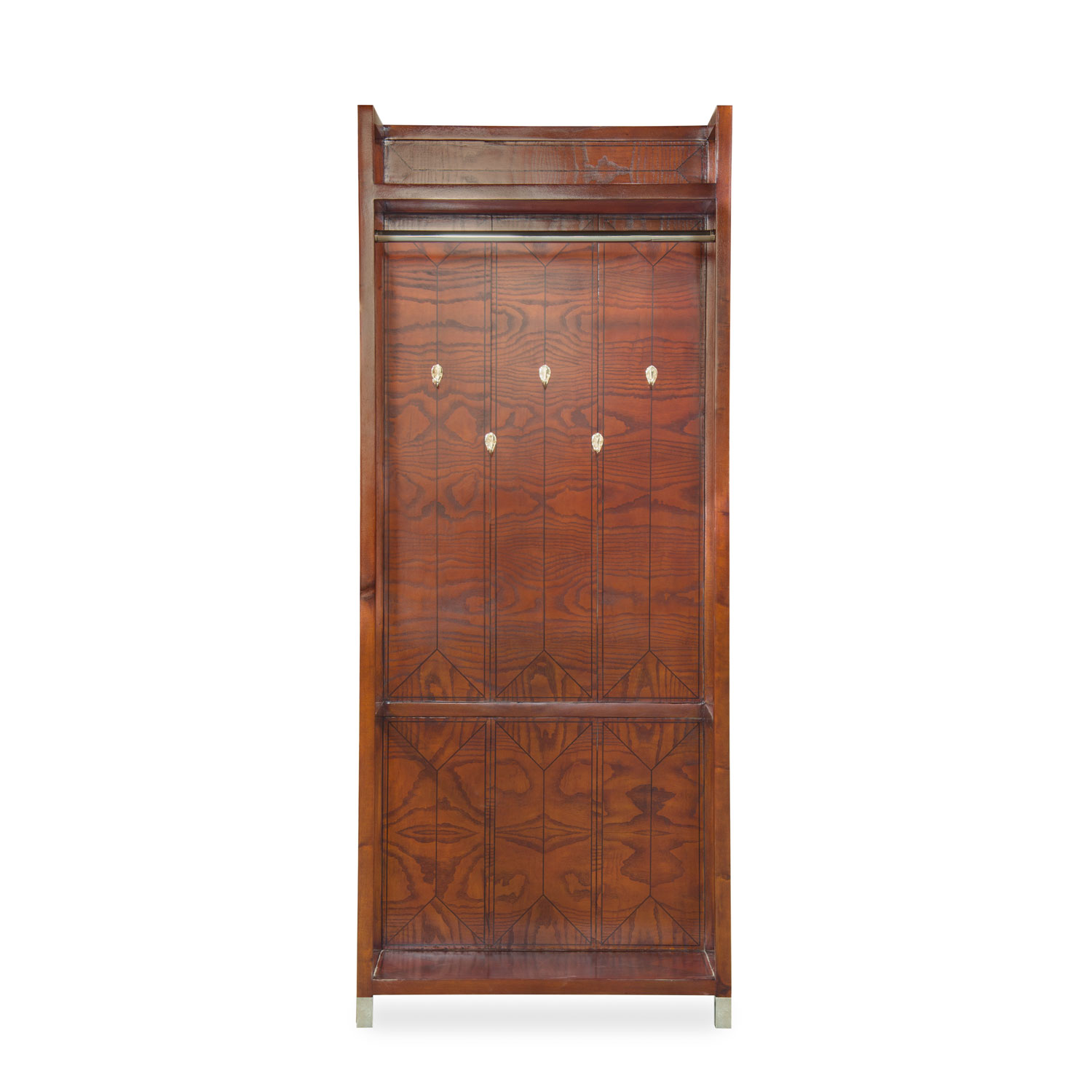 Coat Stand has a antique plated l rail, hangers and toe caps. Made from Ash wood and delicate Art Deco accents.